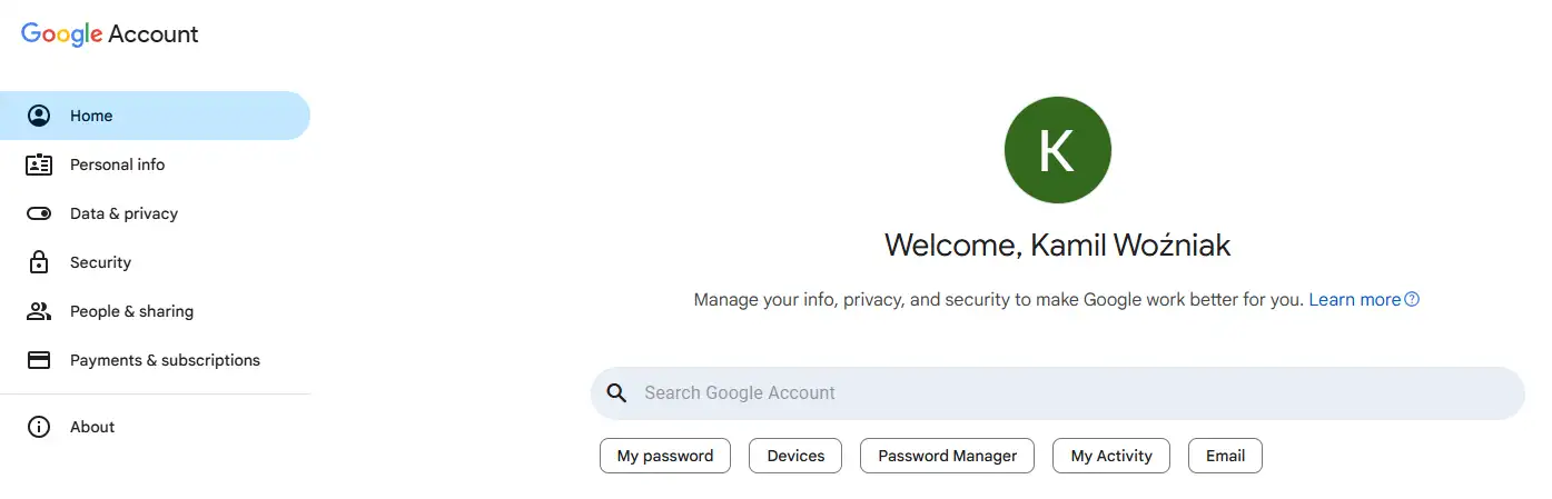 Zaloguj się na swoje konto Google: https://myaccount.google.com/security