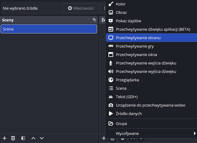 • instalujesz OBS i wybierasz źródło obrazu (cały ekran, okno lub aplikację),