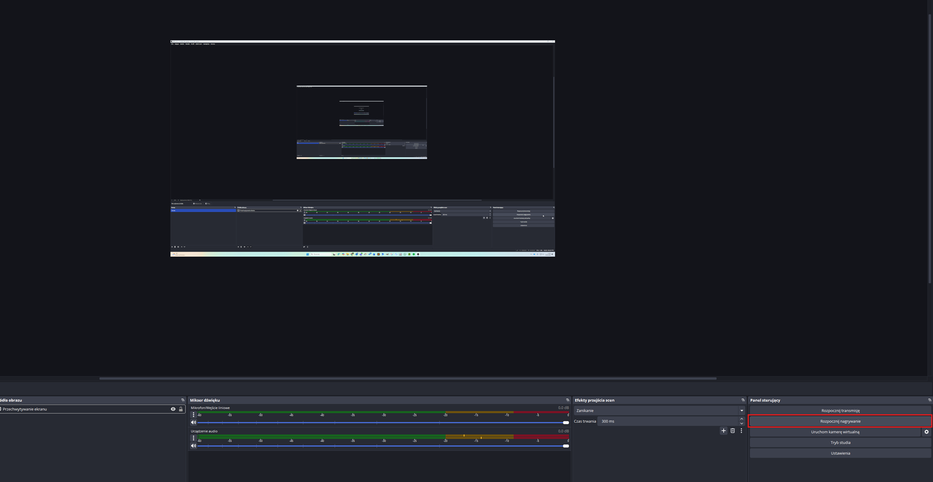 • opcjonalnie dodajesz źródła dźwięku (mikrofon, dźwięk systemowy),