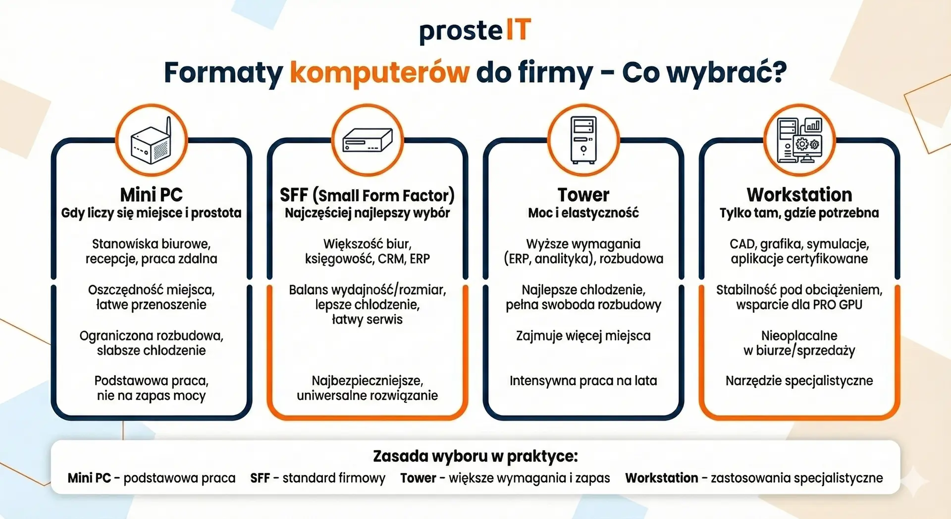 Jeśli nie wiesz, jaki format wybrać do firmy, SFF bardzo często będzie najbezpieczniejszym i najbardziej uniwersalnym rozwiązaniem.